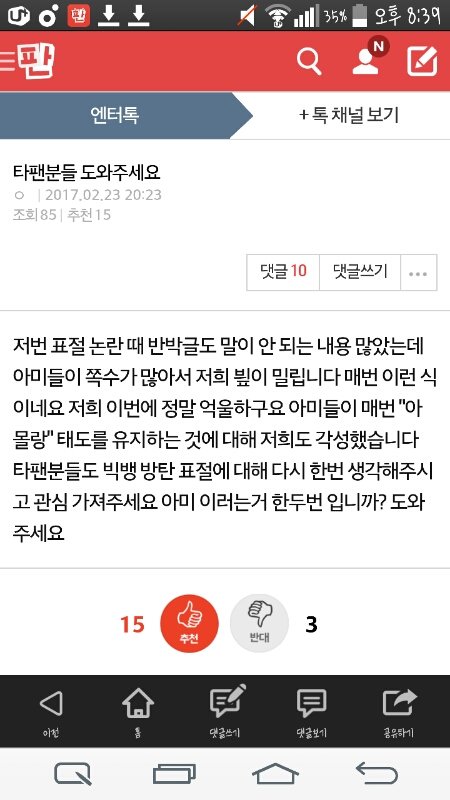 반박글을 쓰면 억지라고 하고...우리가 안쓰면 애들이랑 관련이 없는데 애들은 욕먹고있고....뭐 어떡하라는거지?