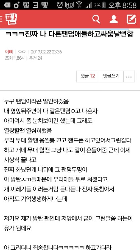 진짜 화났던게 내뒤에 그 팬덤두명이