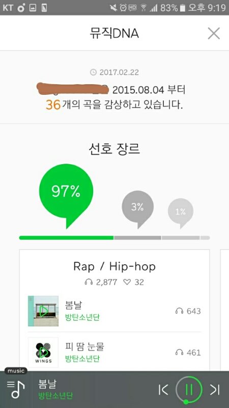 곡 수 작은 이유는 내가 멜론 가입만하고 이 계정사용한건 윙즈 외전때부터여서 그래 옛날엔 지니로 돌렸었어