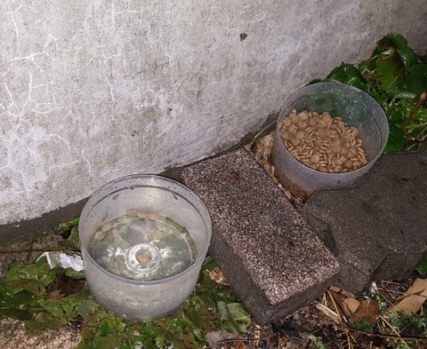 퇴근해서 먹이터에 가보니 사료가 온통 다 젖어 있습니다.