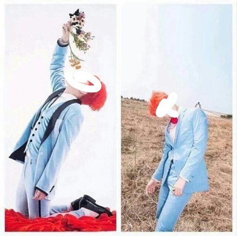 정말 난 처음에 진짜 권지용(지드래곤)이랑 동영배(태양)라고 생각했는데 얼굴 보니까 분홍머리가 랩몬스터였고 주황머리가 지민이었을 거야 진짜 얼굴 가리니까 너무 똑같더라