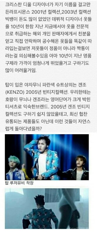 다시 한 번 말하지만 대성이 입은 옷은 빅뱅이 와이지측에서 '자체제작'한 옷이야. 분명 저작권이 있는 옷이야.