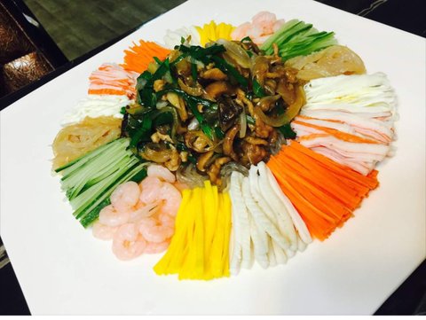 알록달록 예쁜 양장피입니다~ 양장피라고 해도 되나.. 싶네요. 저 볶은 야채 아래에 원래 양장피가 있어야 하지만, 집 근처에서 구하기가 어려워 당면으로 대체했어요 ㅎㅎ 그래도 맛은 좋았으니 다행입니다. 재료 손질부터 조리하고, 플레이팅까지. 인내와 정성이 필요했던 음식인데, 아버지께서 너무 좋아하셔서 두 번 더 해드렸어요~ 겨자소스도 만들어서 뿌려먹으니 톡 쏘는 맛과 달달한 양념된 볶은 양파와 고기 그리고 아삭한 식감을 더해준 생 채소들이 잘 어우러졌던 음식입니다^^