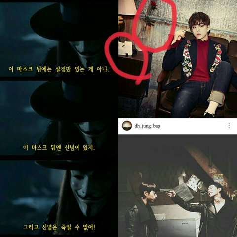 그런데 소름인건 저 포즈가 비겁한 사회의 저항을 그린 영화 '브이 포 벤데타'의 브이가 한 동작과 매우 유사하다는것.