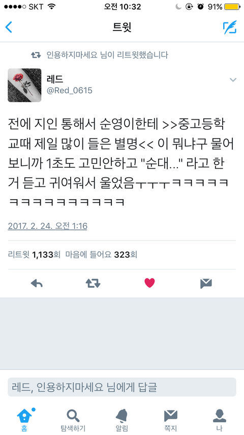 순영이 학창시절 별명...