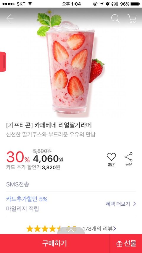 카페베네 리얼딸기라뗀데