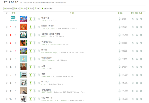 5위는 디싱인데 음방 1위 후보도 들고 꾸준히 차트 상위권에 있는 블락비 예스터데이