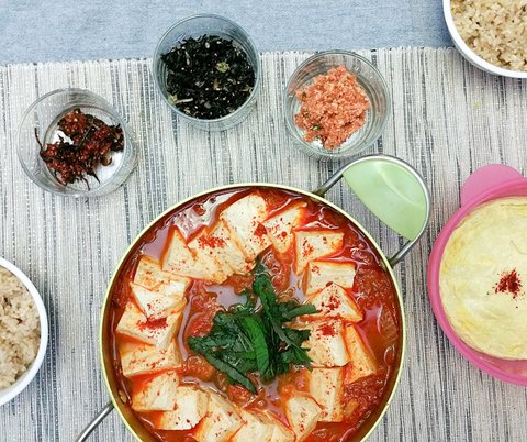 우리 엄마표 김치로 만든 김치찌개. 저 손잡이 떨어진 냄비는 또 등장이네요...남편한테 냄비 사달라고 말없는 시위랄까요 ㅎㅎ