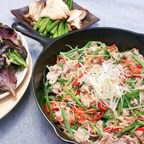 대패삼겹 콩나물 볶음. 부추, 콩나물, 홍고추, 당근을 넣고 후다닥 볶아낸 음식이에요. 정말 맥주를 부르는 맛이어서, 술 못하는 저도 맥주 두잔이나 마셨다는..남편도 못알아봤다는 ;;