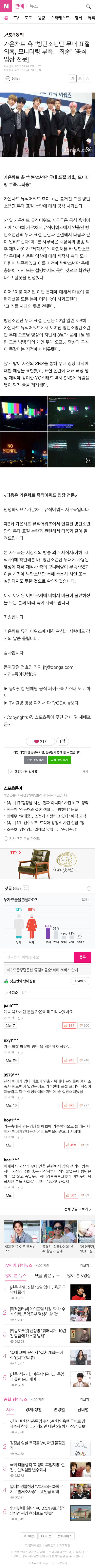 그래도 배댓은 우리 힘내라고 !! 많은뷴들이 추천해주시고 http://entertain.naver.com/read?oid=382&aid=0000544805