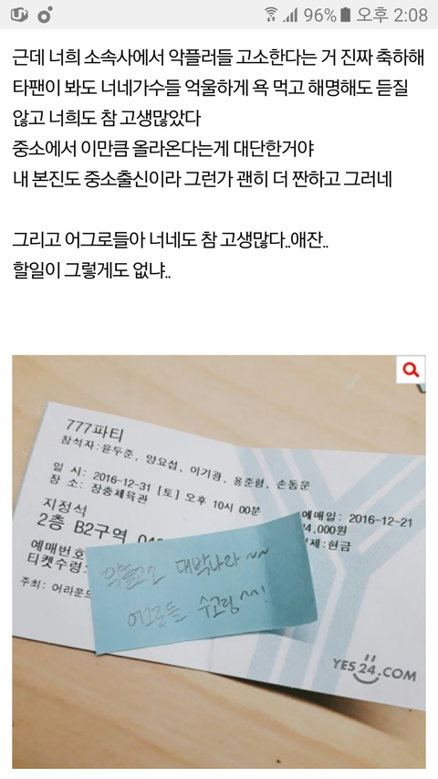 근데 이렇게 너희 응원하는 타팬들도 있다는걸 말 해주고 싶어서 왔어