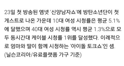 우리 신1양남자show 시청률 폭팔했데 동시간대 케이블 시청률 1위!! 둥이면 알려줘 삭제할게~