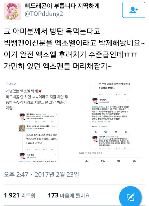 쟤네는 우리한테 열등감있어서 그럼ㅇㅇ 피해의식 장난 아니야 가수 팬은 닮는다더니...