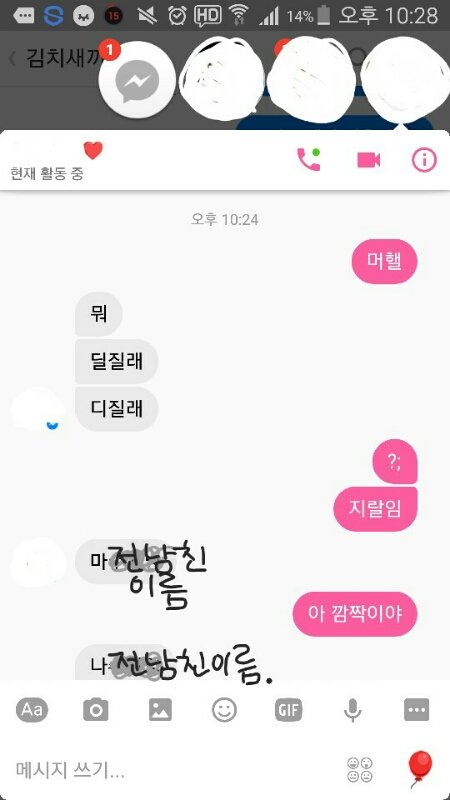 아 어제 친구들이랑 노래방 가는 김에 화장실 간다고 하고 나와서 여자애한테 내가 물아봐달라고 했다고 하지 말고 전 남친한테 왜 그런 건지만 물어봐달라고 했어