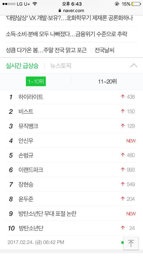얘들아 조작아니야ㅠㅠㅠㅠ인증하라면 더할게 저 캡쳐된시간에 딱들어갔는데 정말 실검에떠있었어