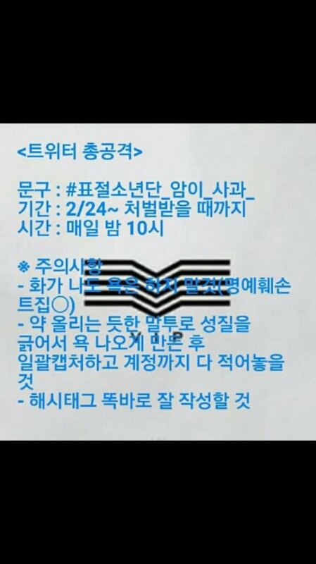 아무리 화가나고 분한건 알겠는데 암이라는 단어 그만써주면 좋겠다. 진짜 암에 걸린 가족이 있는 아미들이 저글보면 얼마나 손떨릴까