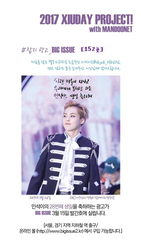 오 만두넷 시우민 생일광고 떴는데 좋다 ㅋㅋ