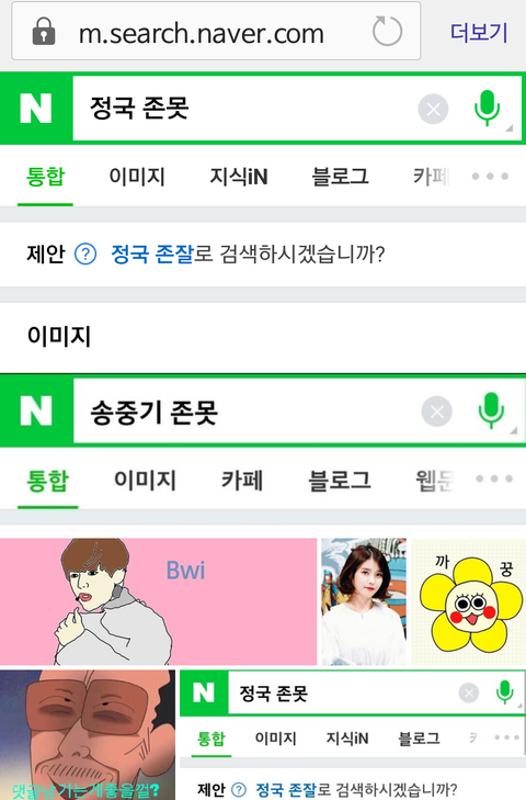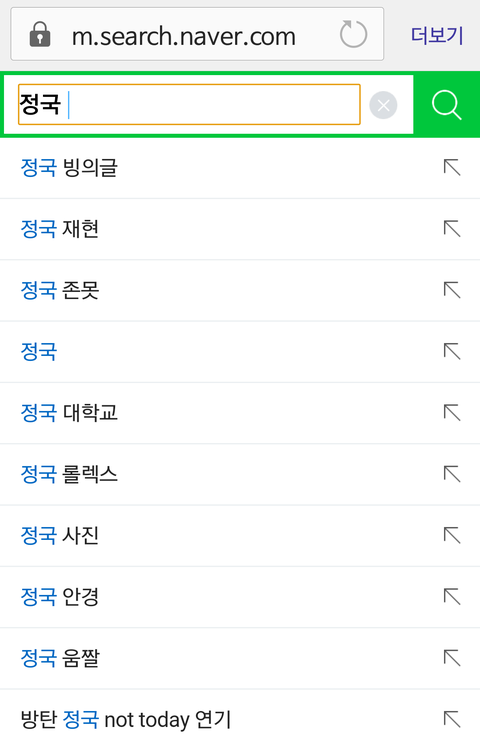 ??초록창에 정국이 연검에 정국 존못이라뜨는거