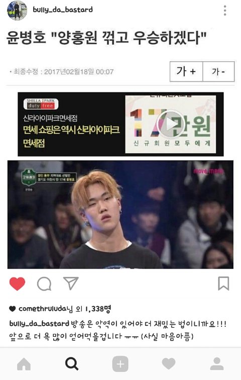 이수린 SRS우승하고 윤병호도 실력짱짱한데 엠넷 그지같은 편집땜에 싸가지없고 허세만 부리는 양아치처럼 나옴 ㅠㅠㅠ