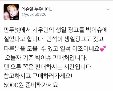 진짜 밍속이 팬들은 진짜 밍속이 닮아서 넘 예쁜 맘으로 팬 활동하는... 진짜 감동적인 모습...어쩜 그 잡지에 광고 할 생각을 했을까...칭찬 받아 마땅하네...^^