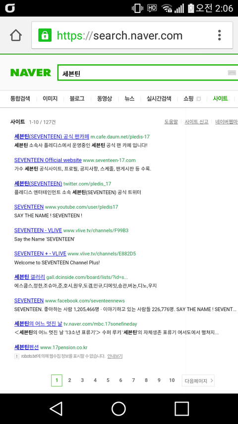 네이버에 세븐틴치고 사이트 들어가면 바로 셉갤나옴