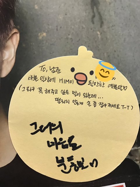 팬싸가신분 머리색깔이 분홍색이라 그대의 마음도 분홍빛♡ 이라고 써줌 ㅠㅠㅠ