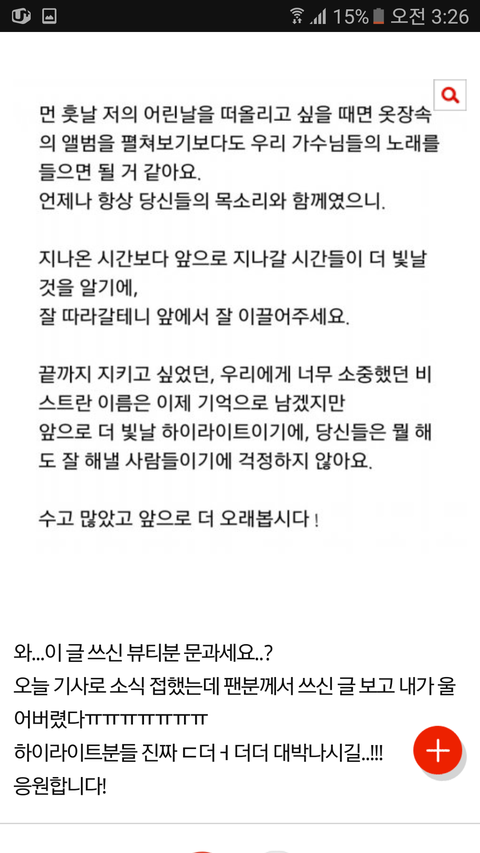 하이라이트 팬분들께서도 한 번 읽으셨음해서 가져와봐요..ㅎㅎ...