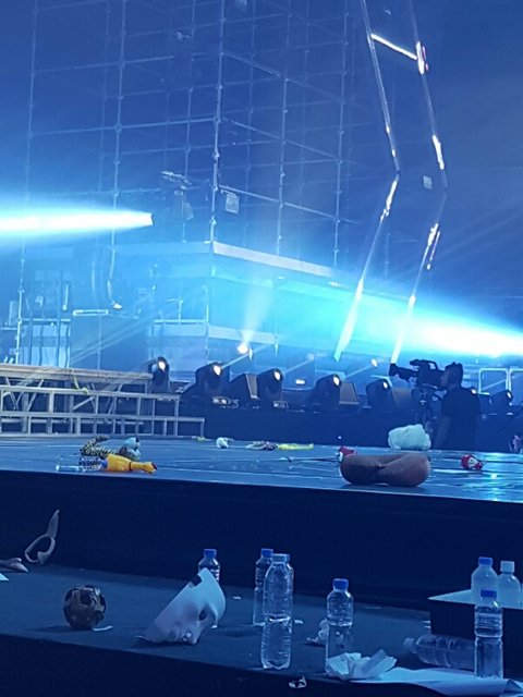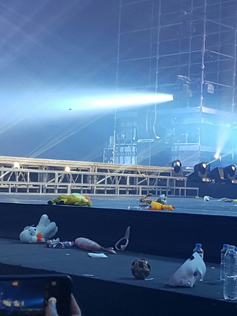 왜 무대위로 뭘 자꾸 던지고 그러냐