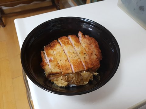 엄마가 돈가스가 몇주일째 냉동실에 묵혀있데서 후딱 돈가스덮밥 했어요. 밥은 간장소스에 양파 얇게썰어 계란물 푼다음 그위에 바삭한 돈가스 튀겨 위에 올려 놓았어요.