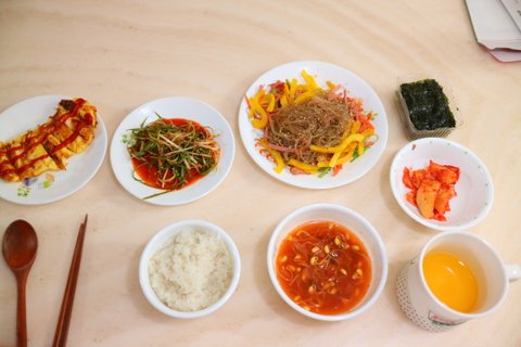 엄마가 저녁하기 싫다셔서 내가하겠다. 하고 냉장고 열었는데 냉장도가 텅텅.. 있는 재료로 그냥저냥 만든 파절임+계란말이+잡채+칼칼한 콩나물국 으로 한상 뚝딱