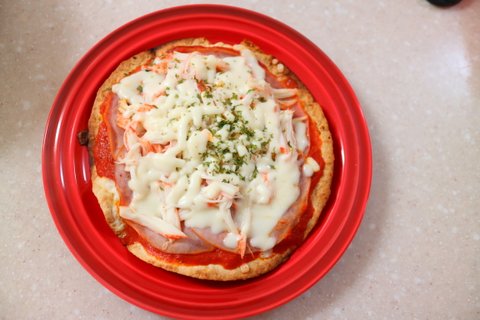 가끔씩 피자시켜먹고 싶은데 마땅히 먹고싶은 피자도 없을땐 크래미 살짝 찟어 피자 만들어 먹어요. 피자치즈가 살짝 안녹는게 저는 좋더라구요..ㅎㅎ
