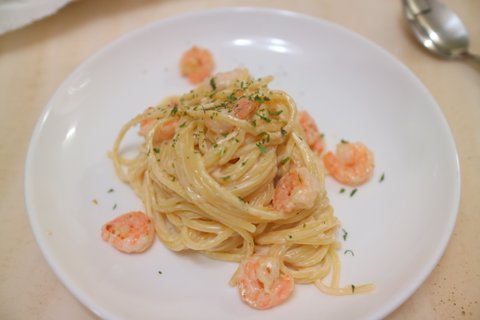 크림파스타를 참 좋아해서 생크림+우유로 소스 만들어 새우크림파스타.