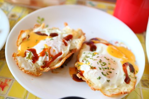 요건 에그베네딕트..지만 빵이 안보이고 계란밖에 안보이네용.. 원래 에그베네딕트는 계란을 톡까서 물에 계란이 안풀어지게 하고 반숙으로 삶는건데 저는 그렇게 하고 팬에 기름 살짝둘러 겉면을 더 바삭하게 했어용! 저 노란건 노른자아니라 소스입니다.(머스타드)