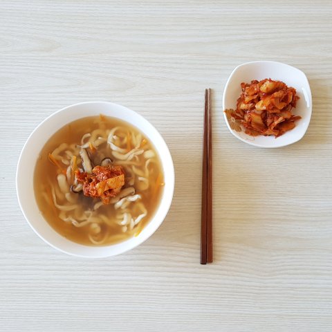 겨울철 칼칼한 멸치육수로 우린 김치칼국수..