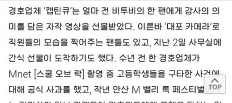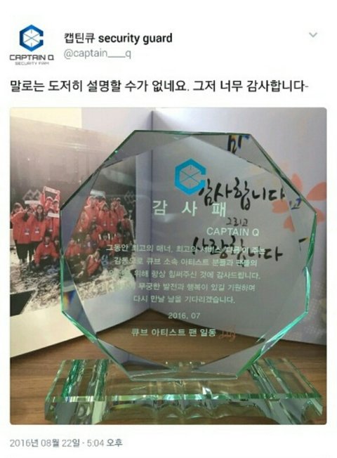 그리고 최근 화제가 된 큐브엔터테인먼트 아티스트 전속 경호팀 '캡틴큐'