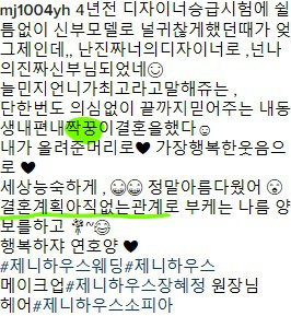 아래에 밑줄 쳐 놓은 건 저거 가지고 까는 머리 텅텅 빈 애들 있길래. 단순히 '본인'의 결혼 생각