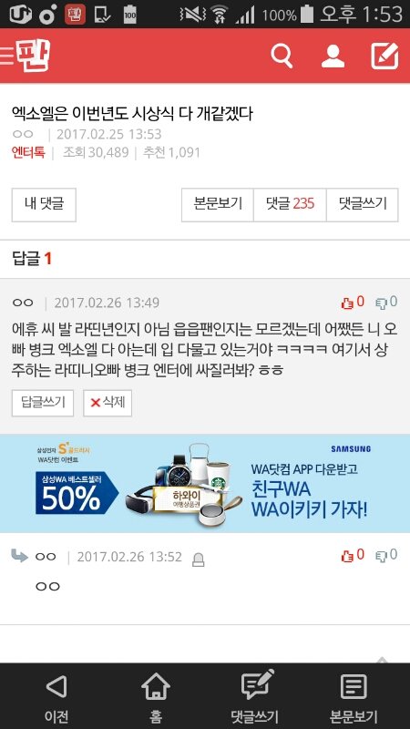 톡선 엑소영향력글 블베에 뜸