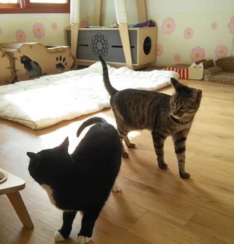 아직 적응중이라 겁먹은 표정이지만 시간이 지나면 애교냥이 되겠죠~