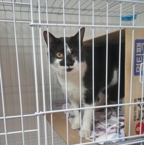 한쪽눈 다쳐서 구조되어 치료하고 퇴원해서 온 아이예요