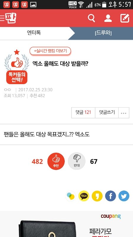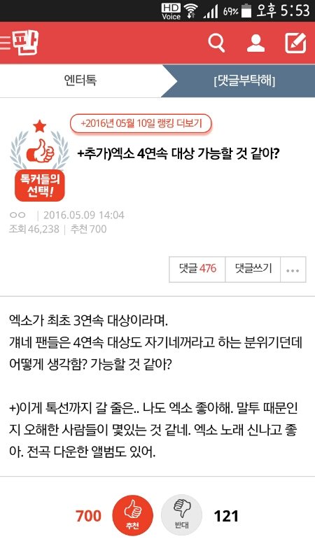 왜 엑소 대상에 타팬들이 이렇게 관심이 많아ㅋㅋ 작년 톡선&베댓