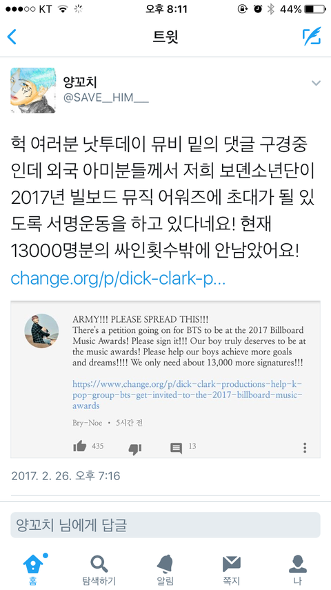 여기들어가서 올라온 링크로 서명해줘!! 13000명밖에 안남았다고 해~