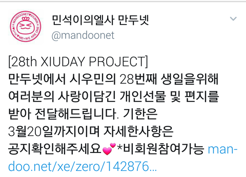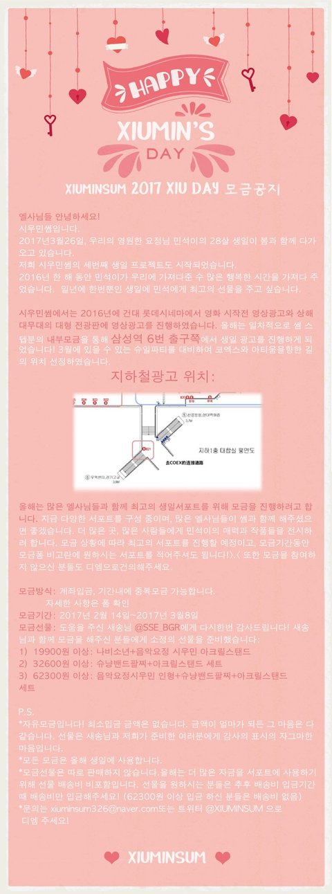 두곳 다 민석이를 위해 열심히 서포트 하는곳이고 믿을수있는곳이야 나처럼 생일선물 못고르는 웅녀들은 모금하는것도 좋을거같아