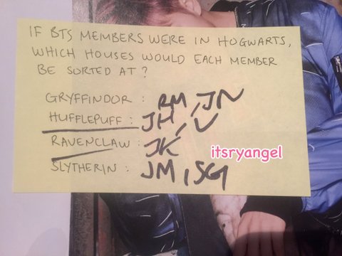 뭔가 정국이랑 남준이랑 바뀌는게 더 잘어울릴것 같지 않아???래번1클로는 좀 막 지혜롭고 공부잘하고 그런이미지고 그리핀도3르는 막 엄청 모험가스럽고 막 좀 그런이미지여서