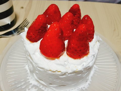 요건 빵집에서 파는 카스테라 같은거에 생크림을 발라서 딸기를 올려봤다고 함