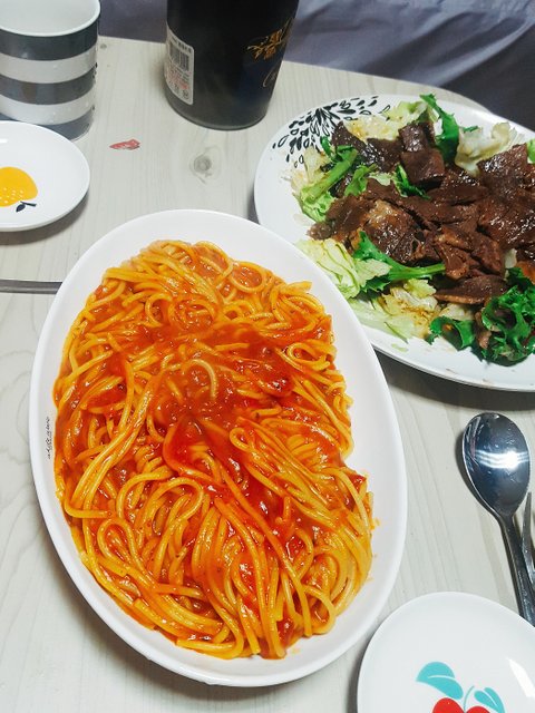 로제파스타와 소고기샐러드