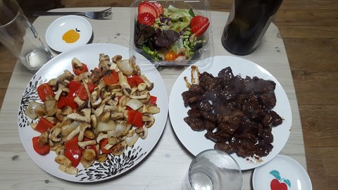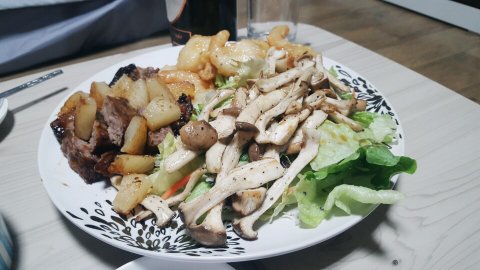 버섯볶음,찹스테이크