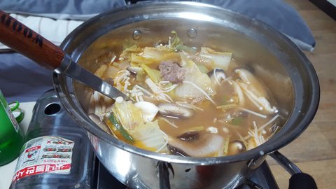 소고기버섯전골 얼갈이배추를 썰어넣으니 얼마나 맛있는지.. 소고기를 많이 넣어 끓여서 더 진득한 국물 ㅠㅠ