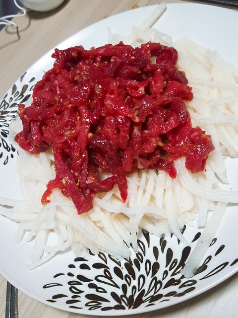정육점에서 우둔살을 사서 참기름..등등 버무리면 됩니다(사실 하는방법 모름.)