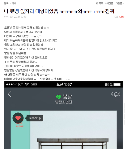 뮤뱅떄 옆자리가 태형이라는 이삐있었는데ㅠㅠㅠ헐 대박..이러고 말았는데