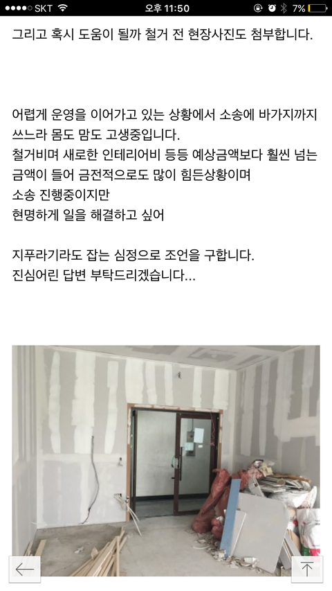 예상치 못한 철거, 후속업체와 재 계약 후 인테리어비용....등